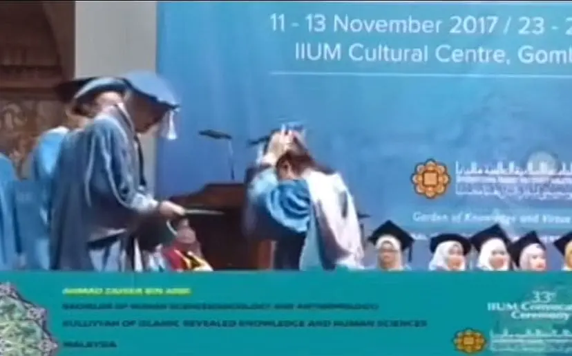Despite all the excitement, a sense of nervousness inevitably creeps in when one goes on stage to receive the scroll with hundreds of eyes watching them, sometimes leading to hilarious blunders, like what happened with this graduand at International Islamic University Malaysia (IIUM)