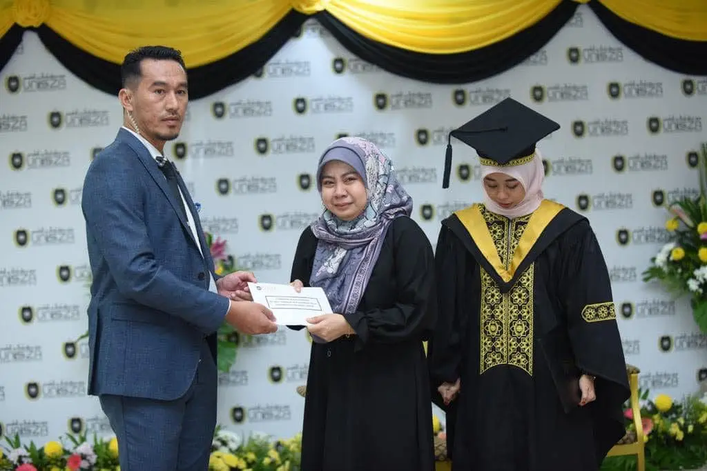 In a touching gesture, UniSZA presented Haslina with RM 2,500 to help her purchase a flight ticket back to Tawau, Sabah, immediately after the ceremony, which she had originally planned to attend the next day.