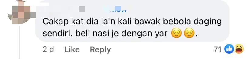 “Just a regular pack of coconut milk rice with some sauce already costs RM5. You get 5 meatballs for only RM2.50, what more do you want?” another netizen asked.