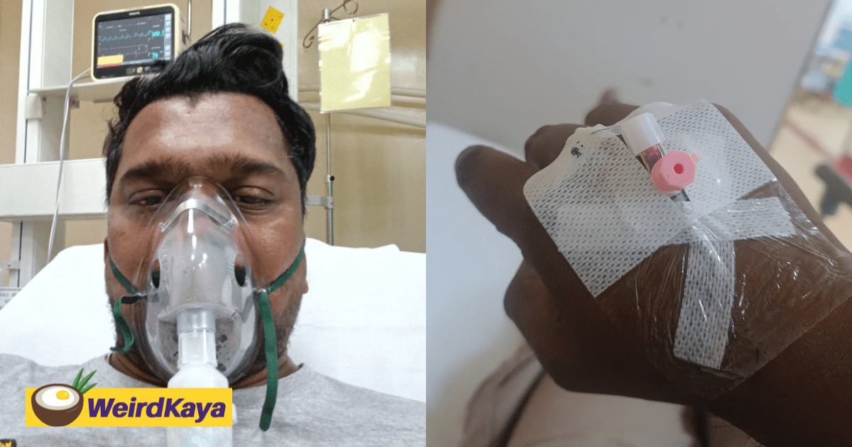 Sathesh shared three photos on his Facebook page, including a striking image of himself wearing an oxygen mask while receiving treatment in the hospital.