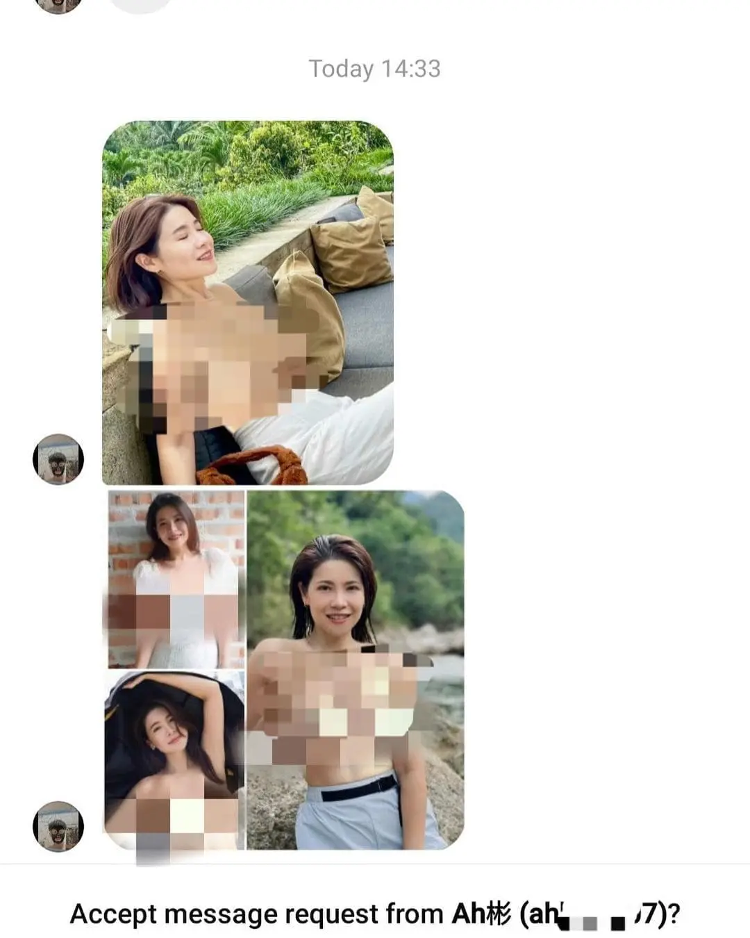 “I received a similar DM, I’ve blocked the account but two years later with a different account the old altered pictures were sent together with the newly altered image again,” she said.