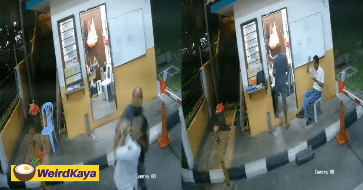 In the six-minute long CCTV footage which has made rounds on social media, it showed the man talking to the female security guard near the security booth.