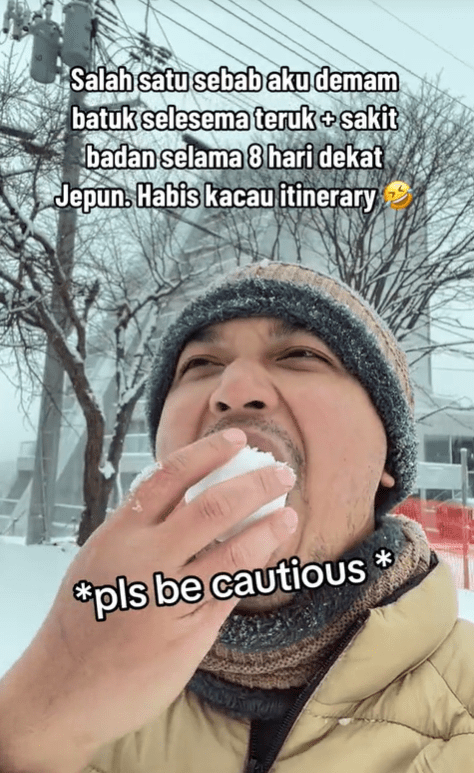Unfortunately for a Malaysian man, he found himself falling extremely sick after he took several mouthfuls of snow while travelling in Japan.