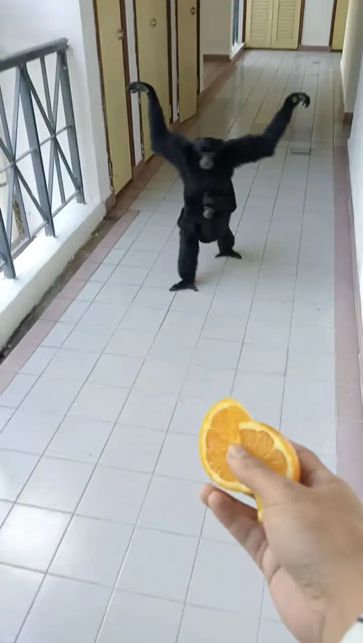 In a Tiktok Video uploaded by @alesyalaibouquet, namely Mohd Azmir Bin Abdul Halim, showed the man offering sliced oranges to a monkey who was already finishing another piece of orange.