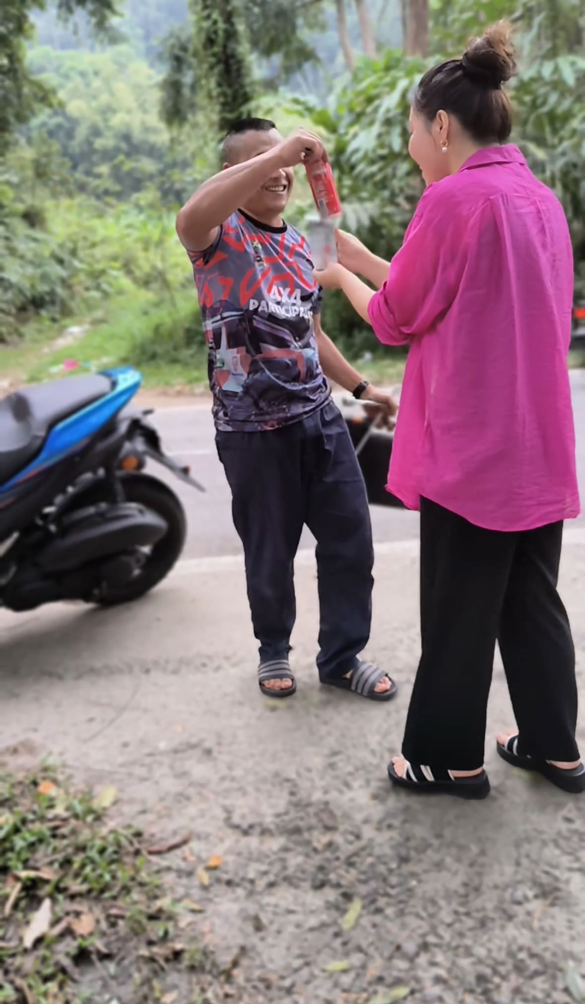 Grateful for his kindness, the tourists offered Ruhaizak and his friend some money and two cans of drinks as a thank-you.
