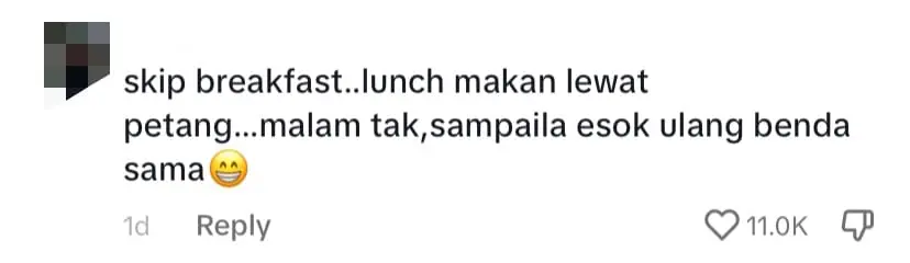 One user humorously remarked on their routine of skipping breakfast, having a late afternoon lunch, and forgoing dinner, only to repeat the cycle the next day.