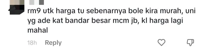 Yet another netizen brought a different perspective, suggesting that the mentioned price of RM9 could be considered affordable. They pointed out that universities in bigger cities like JB and KL have even steeper meal prices.