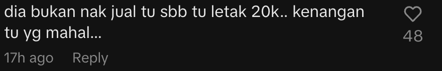 “He doesn’t actually want to sell it, that’s why he set the price at 20k… It’s the memories that are expensive.”