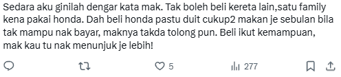 One person shared that their cousin faced similar pressure from their family to buy a Honda, despite struggling to make ends meet.