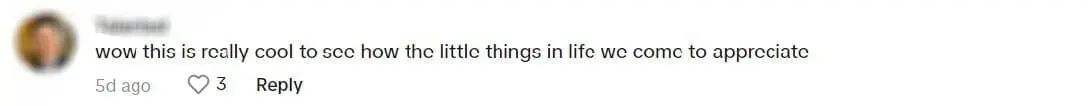 “Wow this is really cool to see how the little things in life we come to appreciate”