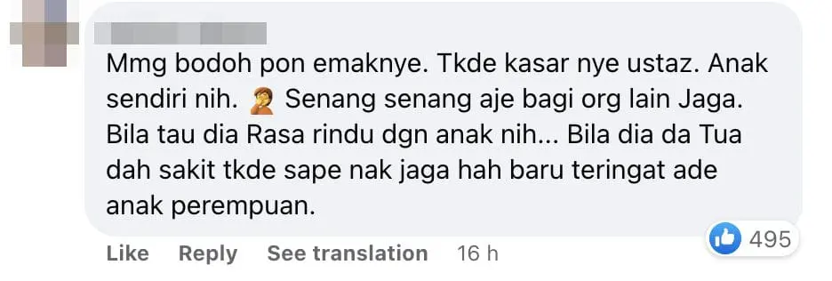 ‘Her mother is really foolish. No sense of responsibility. This is her own child. She easily hands her over to someone else to take care of. When she gets old and sick, there won’t be anyone to take care of her. Then she’ll remember she has a daughter.‘