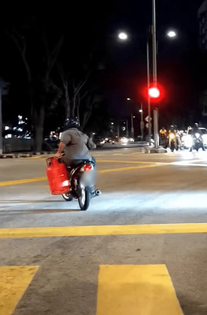 In an unusual turn of events, a video showing a motorcyclist believed to be in Penang holding a gas cylinder while riding through traffic at night has gone viral on social media.