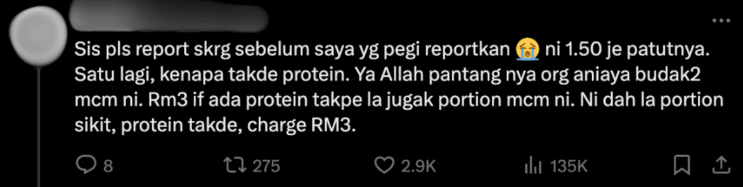 One netizen expressed their disbelief, writing, “Sis, please report this now before I go and report it myself 😭. This should only be RM1.50.