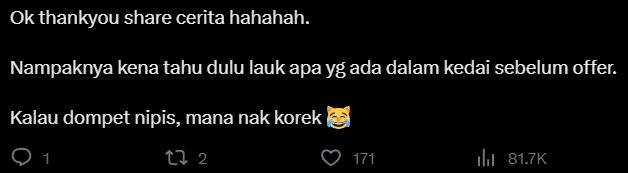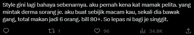 Another netizen mentioned a scenario where one person asked for a meal, but suddenly, six more appeared, leading to a bill exceeding RM80.