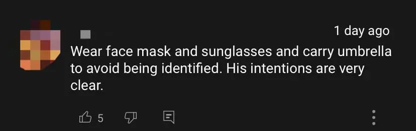 “Wear face mask and sunglasses and carry umbrella to avoid being identified. His intentions are very clear.“