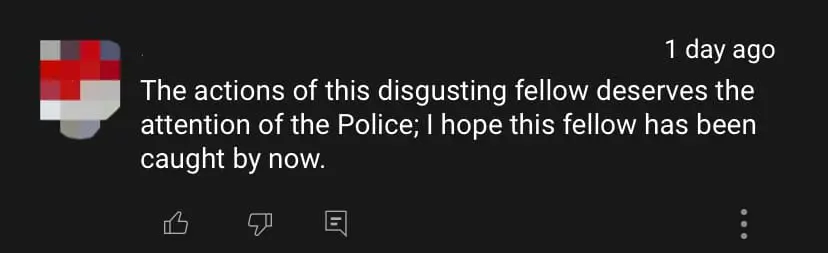“The actions of this disgusting fellow deserves the attention of the police. I hope this fellow has been caught by now.”