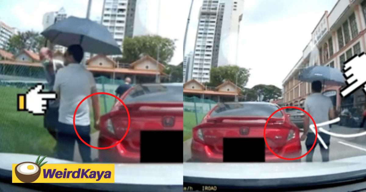SINGAPORE – Angry over a parking dispute, a man driving a dark grey Proton X50 bearing a Malaysian-registered plate number took matters into his own hand by executing his own brand of street justice.