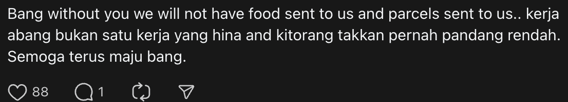 Others also pointed out that being a rider is not an easy job either, and should never be looked down on.