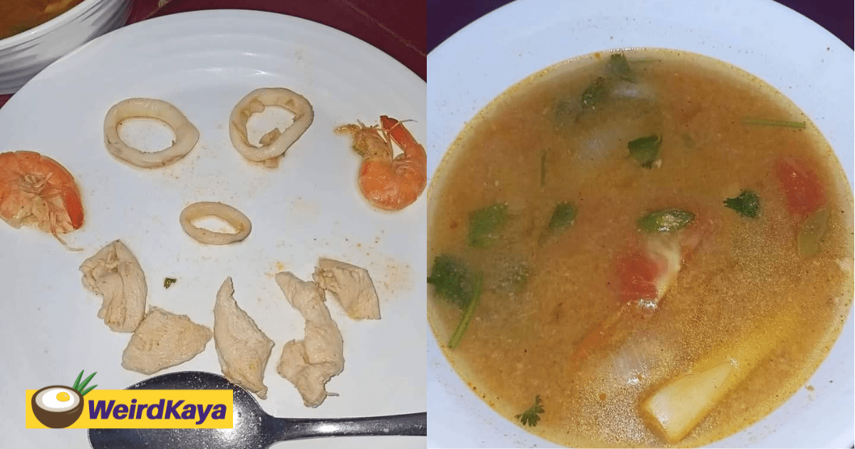 In a series of photos which were originally posted by a netizen named Man Marang but was later reshared by Saja Viral on Facebook, it showed a bowl of tomyam soup being served to the customer.