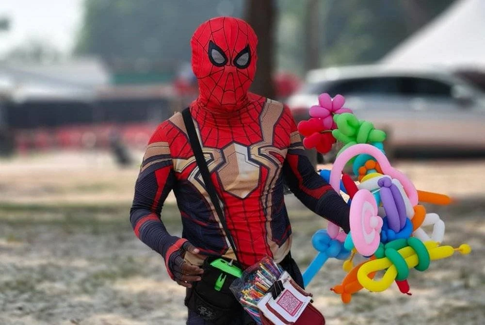 Khairul is a familiar face around Dataran Nilai and Pantai Bagan Lalang where he earns a living by selling balloon animals. He sometimes dresses up as Spider-Man to attract children.