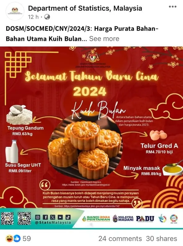 The poster is addressing public concern about the steep rise in mooncake ingredient prices in Malaysia.