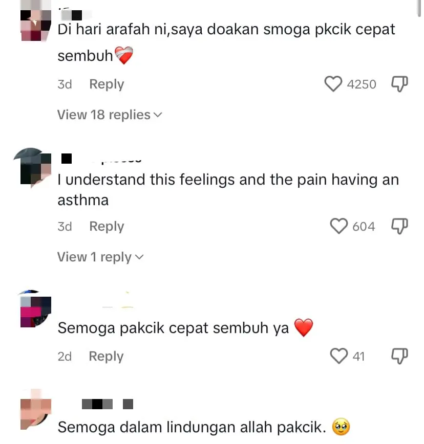 Prayers and heartfelt wishes for his recovery are common in the comments section, with one user expressing, “Oh God… I want to cry. May Allah grant strength and perfect health to you, uncle.”