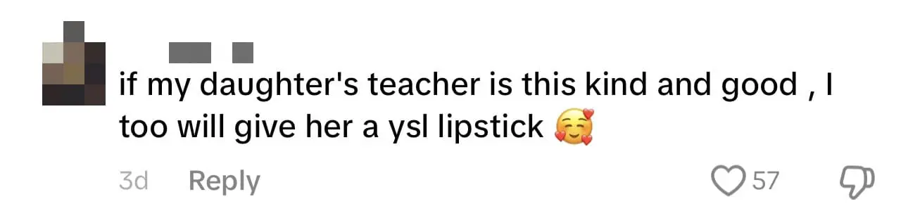 ‘If my daughter’s teacher was this kind and good, I too would give her a YSL lipstick.’