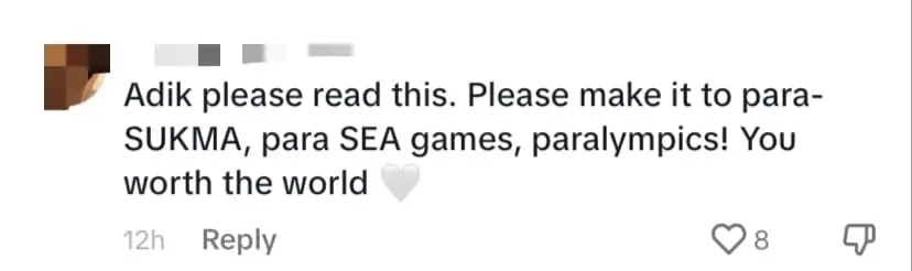 One inspired user expressed hope for the young athlete’s future, urging him to aim for para-SUKMA, the para SEA games, and even the Paralympics, emphasizing that the teen is worth the world.