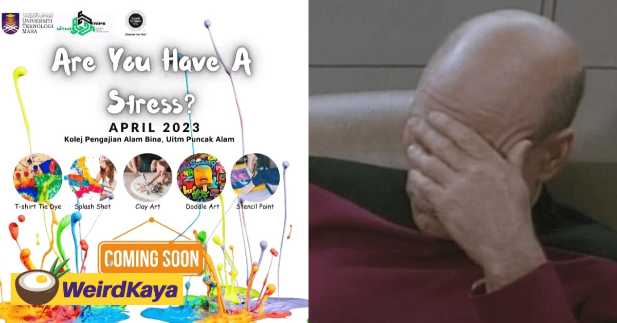 In a tweet shared by @naimleigh on Wednesday (Apr 5), it showed an event poster by Universiti Teknologi Mara (UiTM), where it was intended to spread awareness about the event aimed at reducing stress through a variety of activities.