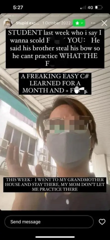 A violin teacher has come under the spotlight after a concerned parent revealed how he took to Instagram to rant and curse his students out.
