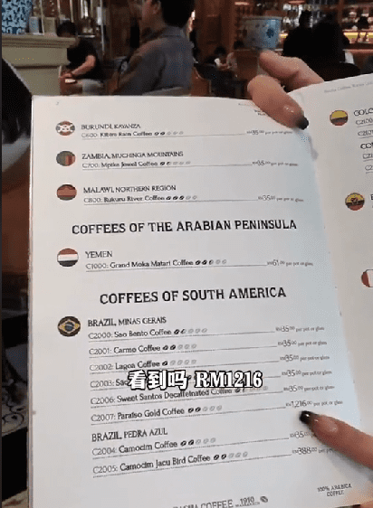 At RM1,216 per cup, this coffee boasts an exotic lineage, hailing from South America and thriving at an altitude of 1,100 meters.