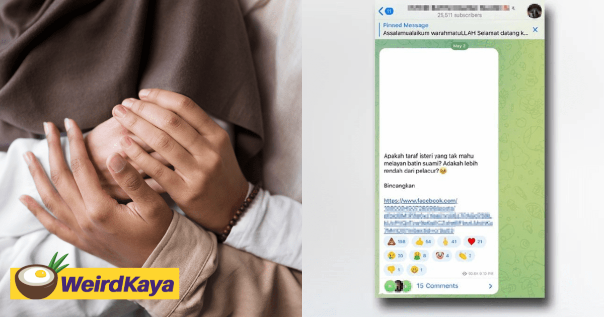 The Malay daily also reported that the ‘ustazah’ has a following of more than 24,000 people and that there was another Telegram group which offered marital advice from an extreme perspective and required those interested to join to pay a membership fee.
