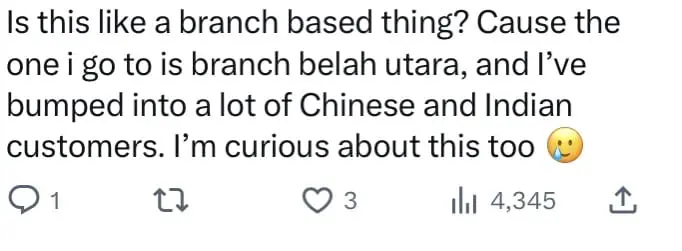 Another netizen speculated that it could be a case of disparity in business conduct across its various branches, where she mentioned frequenting the outlet in the Northern region and had encountered numerous Chinese and Indian customers.
