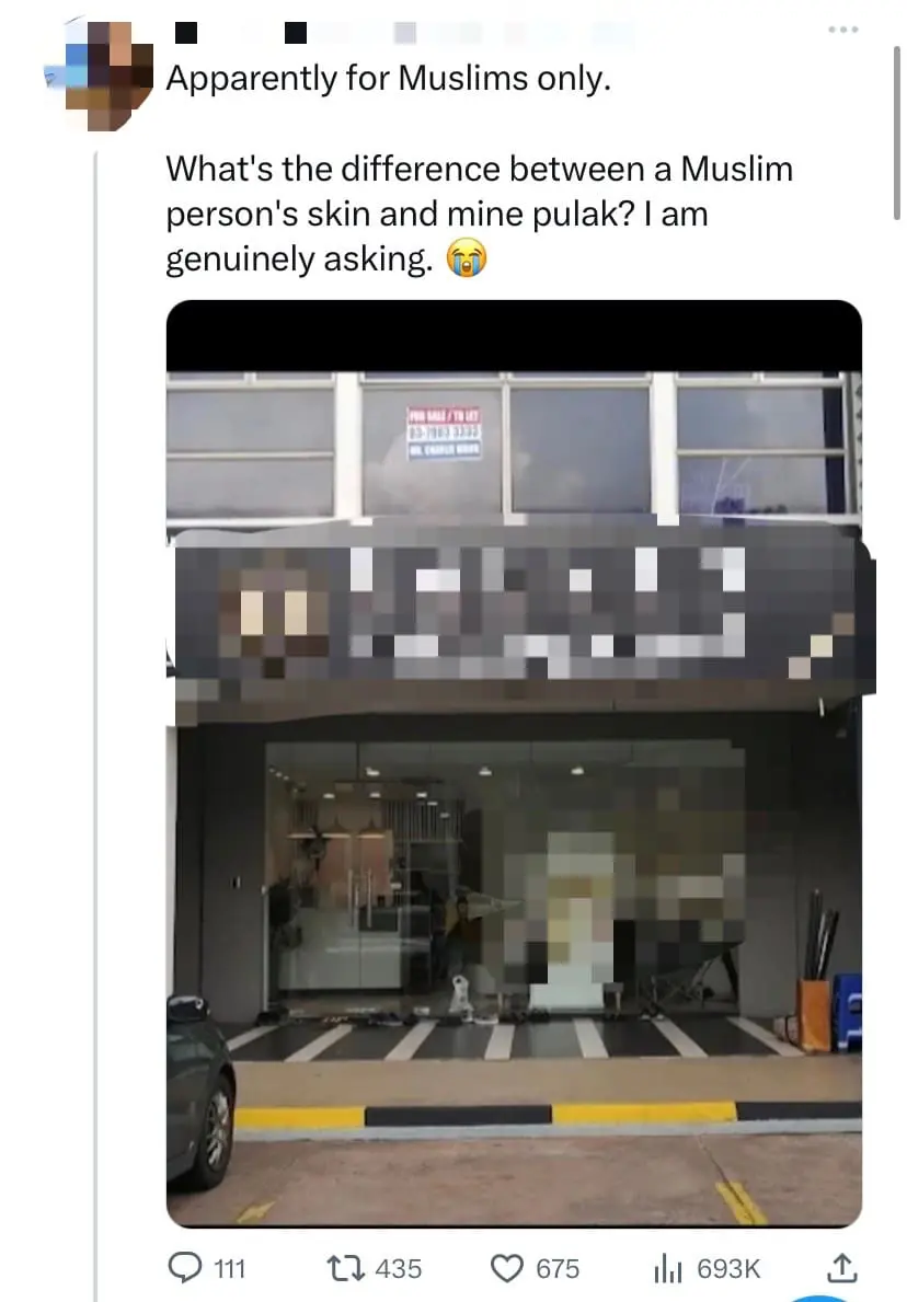 In a Twitter post, a woman claimed that the said a beauty center at Jaya One refused to serve her, citing that they only cater for Muslim customers.