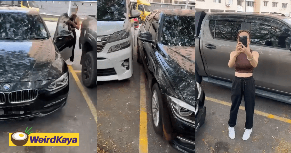 In a 20-second clip shared to the Facebook group 甲洞吹水站 on Saturday (Apr 6), it showed a man filming a black BMW which was parked rather badly, where one of its rear wheels was outside of the space lines.