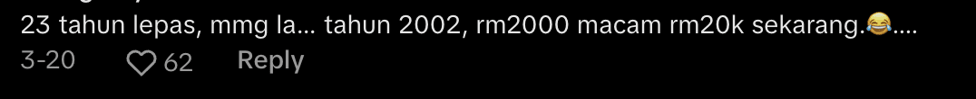 Another echoed this by comparing RM2,000 in 2002 to nearly RM20,000 today, highlighting the impact of inflation over two decades.