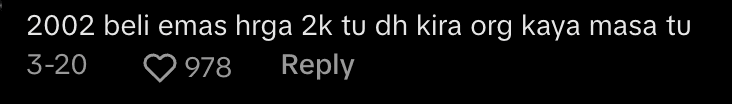 Some were quick to point out just how significant the value of RM2,000 was back in 2002. One user joked that buying gold for RM2K at that time already meant you were considered “rich,” given how much that amount was worth back then.