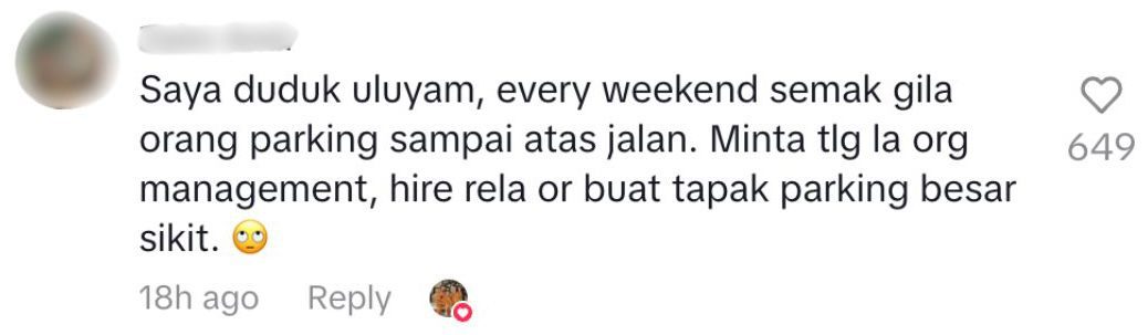 “I live in Ulu Yam. Every weekend, it’s crazy with people parking all the way onto the road. Please, to the management, hire some RELA officers or make a bigger parking area,” one user wrote.