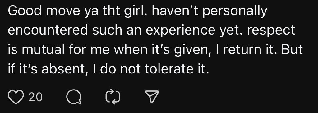 Instead of entertaining his nonsense, the woman coolly stood up, walked to the counter, and settled her own meal only. Before leaving, she told the staff: “Whatever he ate, ask him to pay for himself.”