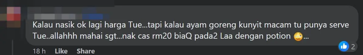 “If the rice is fine, it’s acceptable…but when it comes to serving turmeric fried chicken like that…oh my, it’s too expensive. Charging RM20, let’s be reasonable with the portion.”