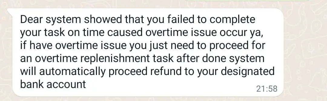 Upon the completion of her ‘tasks’, the scammers ‘congratulated’ the woman but immediately changed their stance when she requested for a refund, claiming that there was an error and demanded that she purchase a RM15,000 computer to unfreeze her account.