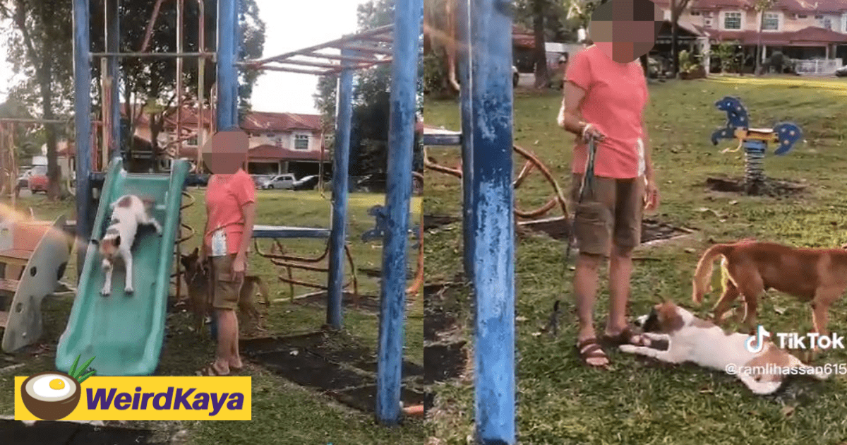 In a video uploaded by TikTok user @ramlihassan615, it showed a middle-aged woman letting three dogs play with the slide at a playground.