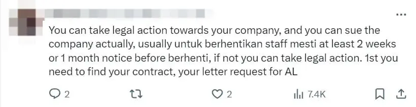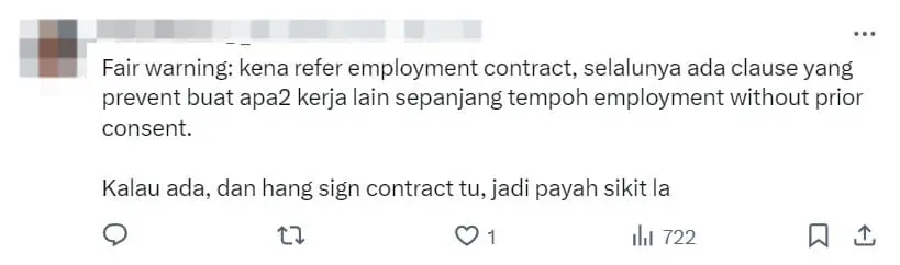 A Malaysian woman expressed her frustration after being fired by her boss for engaging in part-time work during her annual leave.