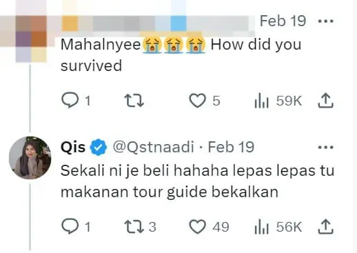 When another user inquired about how she manages to survive there given the high expenses, she simply replied, “Just this once, I bought it hahaha. Afterwards, the tour guide provided the food.”