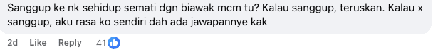 Another commenter said if she is able to tolerate living like that, she can continue, but if not, then she already knows what decision she needs to make about her marriage.