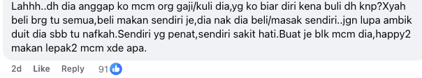Some advised her to stop buying groceries if he only complains and never helps.