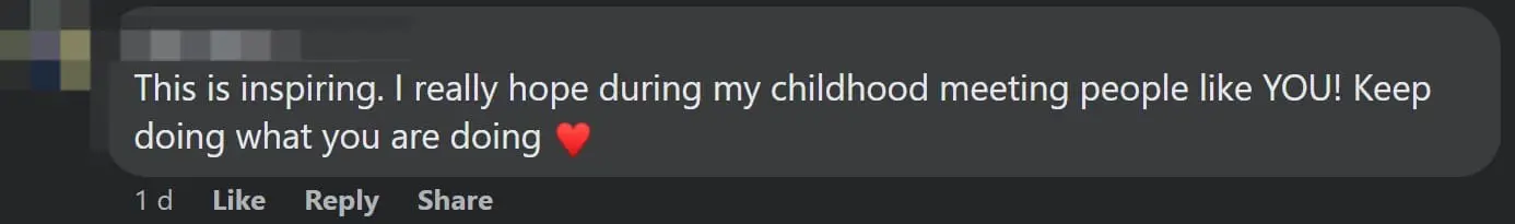 “This is inspiring. I really hope I met people like you during my childhood! Keep doing what you are doing.”