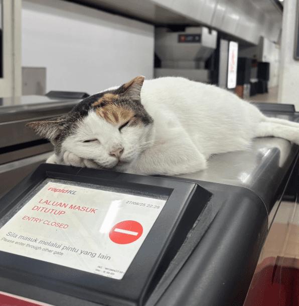 Some even joked that visiting LRT Wangsa Maju is now incomplete without checking if the chubby cat is on duty.