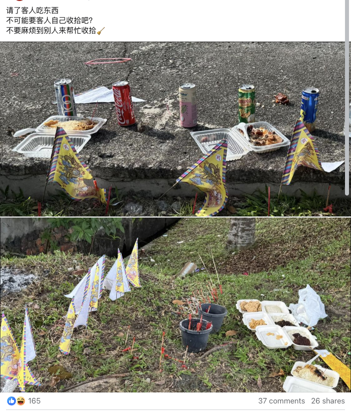 But netizens argue that not clearing the offerings gives outsiders the impression that it’s unhygienic and inconsiderate, especially in public areas.