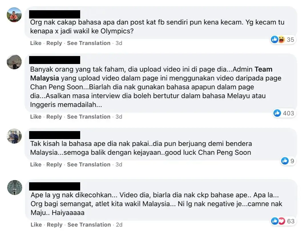 Shortly after, Team Malaysia reshared the video on their Facebook account, only to have it drowned in a sea of racist jokes.